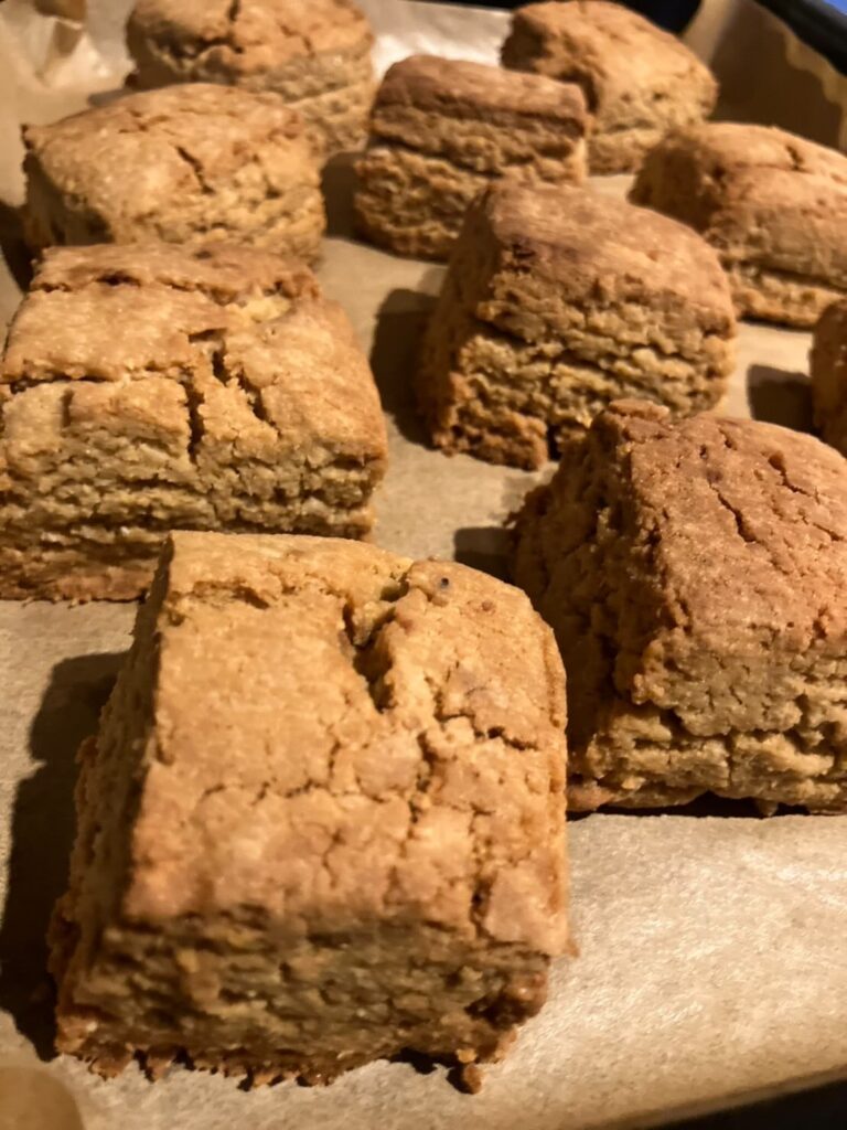 ・玄米粉のスコーン ドライいちじくとくるみ◎シュガーフリー。オートミール粉とアーモンドパウダー、有機豆乳を使用しています。