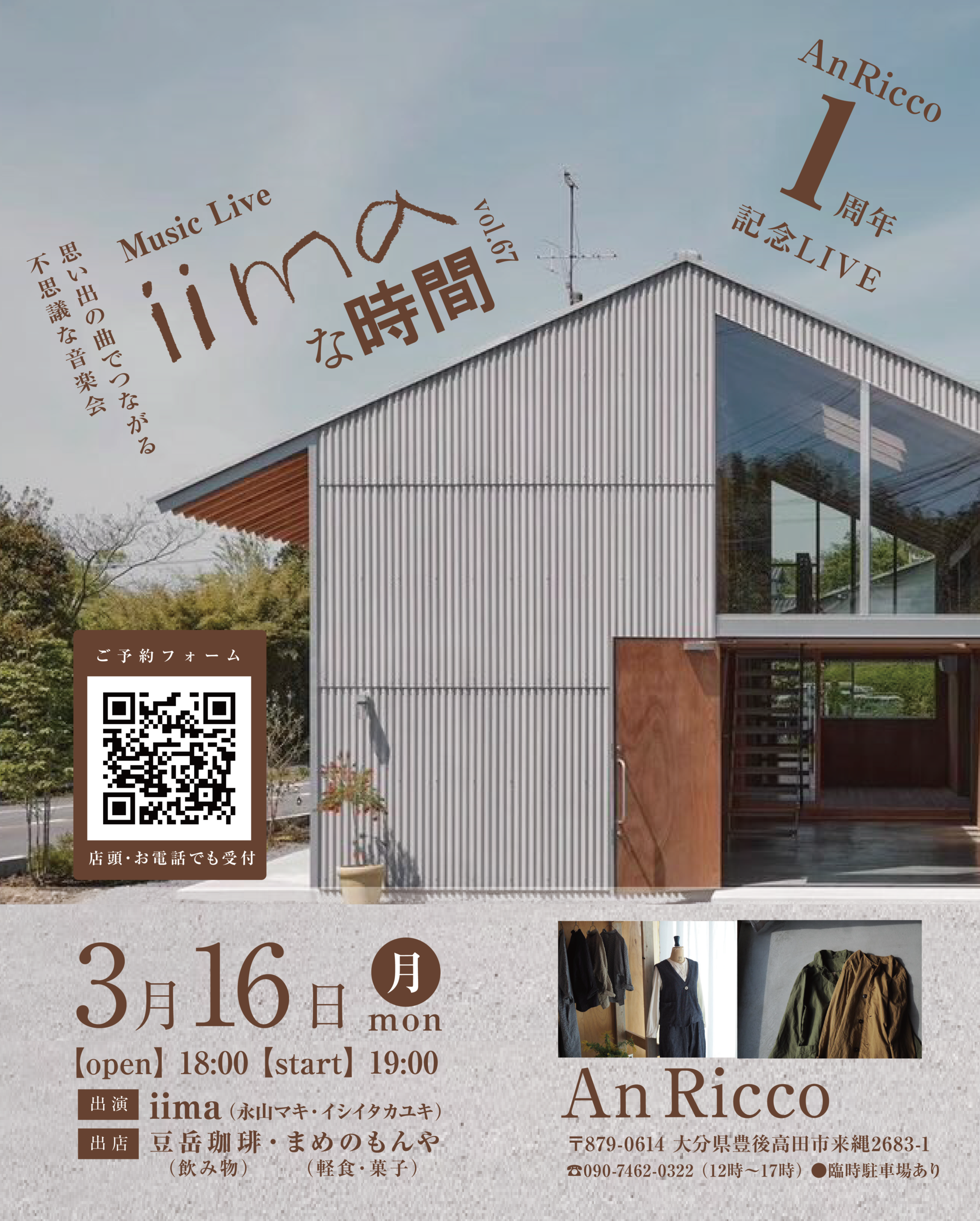 アンリコさんの1周年記念『iimaな時間』での開催となりますので